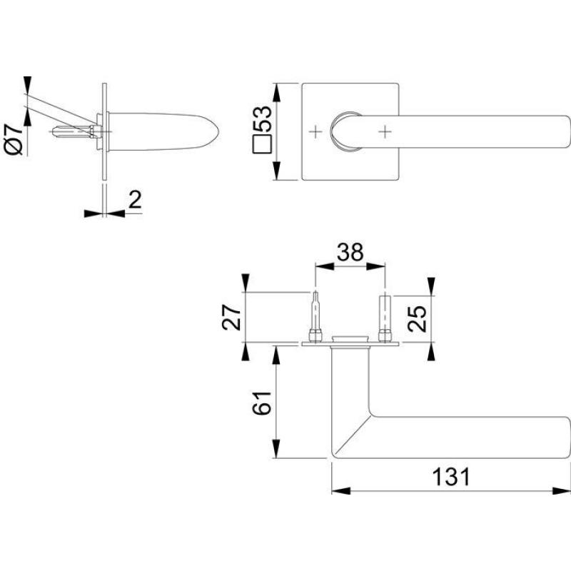 Hoppe-SchnellstiftPlus-Edelstahl-Flachrosetten-Türgriff-Garnitur ohne Schlüsselrosetten für Innentüren · mit Hoppe Vollstift (Stift-/Lochteil) · geprüft nach DIN EN 1906:37-0140U (Gebrauchs-Kategorie Klasse 3) · Lagerung: Türgriff lose, wartungsfreie Gleitlager · aufsteckbare Edelstahl-Griffrosetten mit durchgehenden Stütznocken · für Türstärke 35-45 mm · Drückerlänge 131 mm · Drückertiefe 61 mm · DIN links / rechts · Besonderheit: schrauben- und werkzeuglose Montage, 2 mm flache quadratische Rosetten