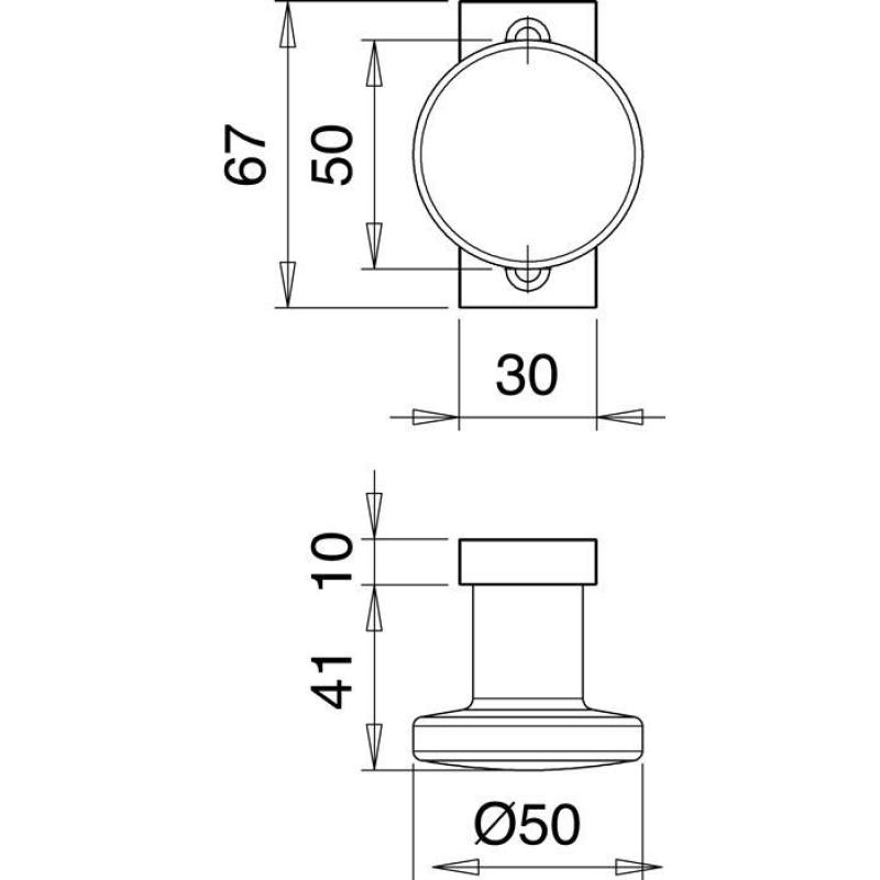 für Rahmentüren · gerade, fest auf Rosette · Rosette Stärke 10 mm · Höhe 67,5 mm · Breite 30 mm · Schraublochabstand 50 mm · sichtbare Verschraubung · DIN links / rechts · Lieferung ohne Stift und Schrauben