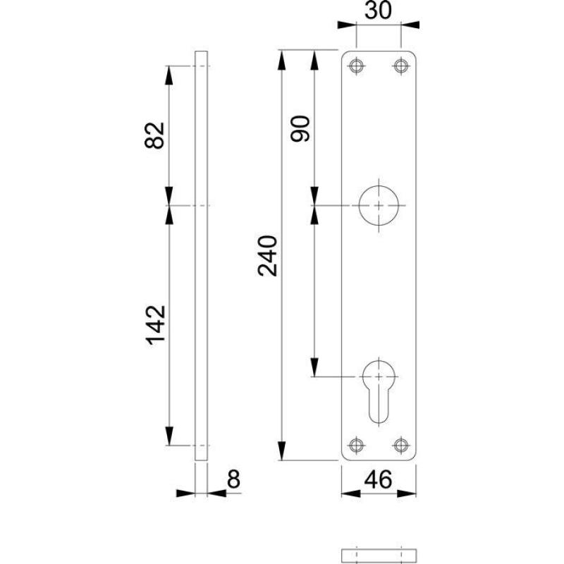 Langschildpaar 202H F2/neusilberfarbig F2 PZ 92mm HOPPE