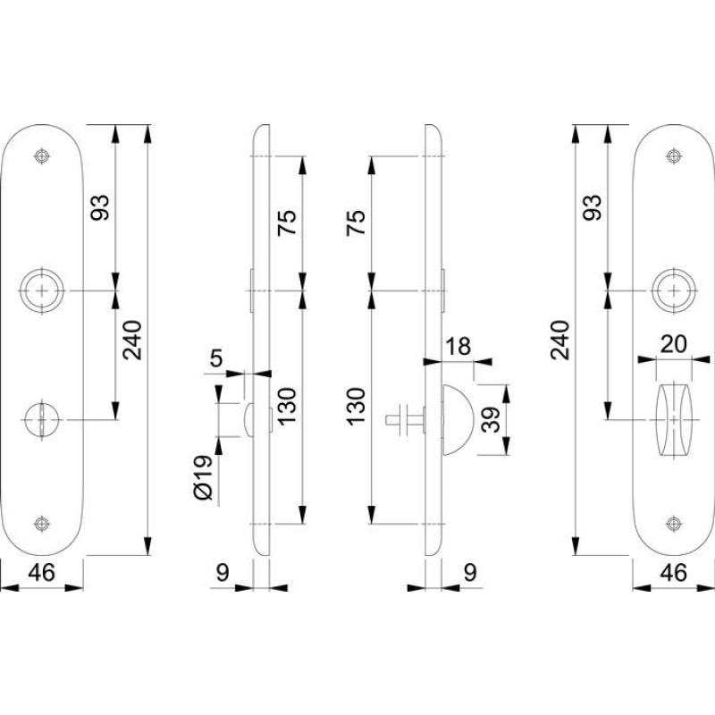 für Zimmertüren · Schild: Länge 240 mm, Breite 46 mm · mit Rückholfederpaket ·