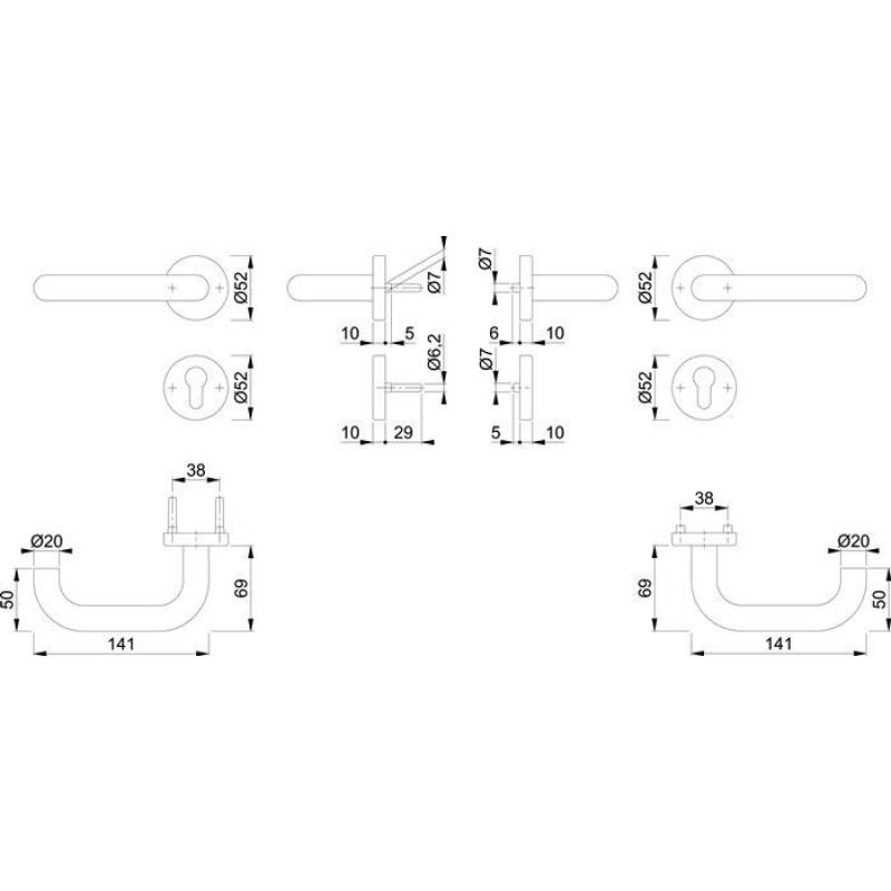 Edelstahl-Feuerschutz-Rosetten-Garnitur mit Schlüsselrosetten für Innentüren / Wohnungsabschlusstüren · geprüft nach DIN 18273 (Antipanik-Drückergrt. mitgeprüft in Notausgangsverschlüssen nach DIN EN 179) und DIN EN 1906: 47-D1150A und PIVCERTPlus (1.000.000 Prüfzyklen) · Objekt-Garnitur (Gebrauchskategorie 4) · Lagerung: Türgriffe fest/drehbar (Wechselgarnitur: außen Knopf fest), Rückholfedern, HOPPE-Steckgriff-Verbindung mit Kugel-Arretierung Sertos®, wartungsfreie Gleitlager · Verbindung: HOPPE-Profilvollstift (Drückergrt.) / HOPPE-FDW-Profilvollstift (Wechselgrt.) / HOPPE-Antipanikvollstift (Antipanik-Drückergrt.) · Unterkonstruktion: Stahl, Stütznocken · Befestigung: verdeckt, durchgehend, Gewindeschrauben M4 · Lochung PZ · DIN links / rechts verwendbar · für Türstärke 40 - 65 cm