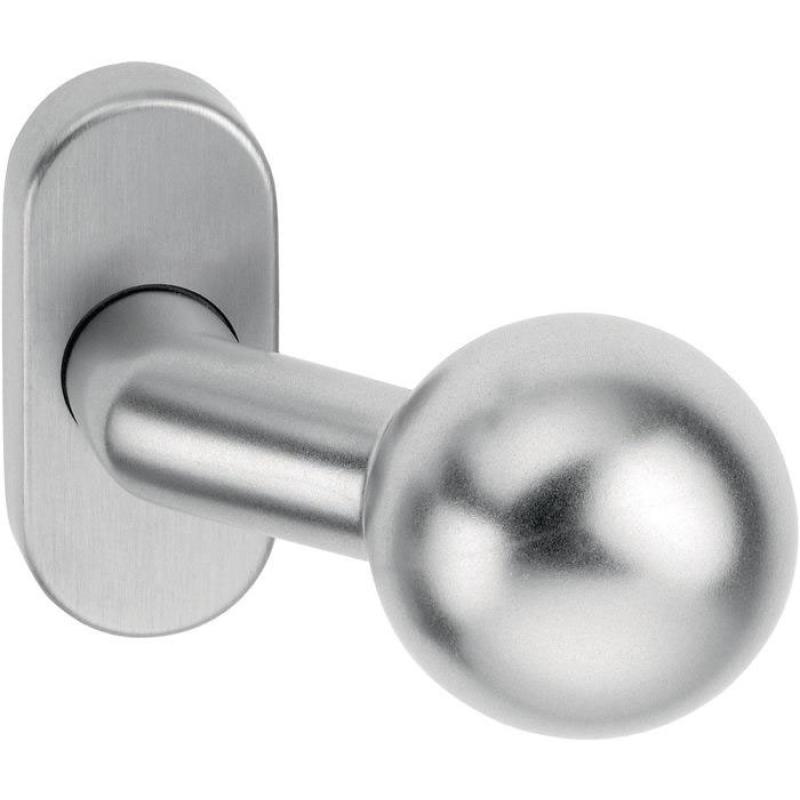 für Feuerschutz-Rahmentüren · Norm DIN 18273 / DIN EN 1906 · gekröpft · fest auf ovaler Rosette · M 12 Gewinde · Rosette Stärke 14,5 mm · Höhe 75 mm · Breite 34 mm · unsichtbare Verschraubung · Lieferung ohne Stift und Schrauben