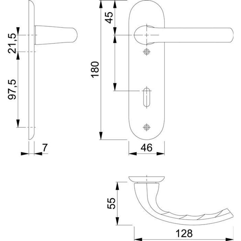 Innentür-Kurzschild-Garnitur: geprüft nach DIN EN 1906 (Gebrauchs-Kategorie Klasse 3) · Verbindung: HOPPE-Schnellstift mit HOPPE-Vollstift (Stift-/Lochteil) · Vierkant 8 mm · Schilder sichtbar verschraubt · für Türstärke 37 - 42 mm · Anschlagrichtung DIN links / rechts · Vierkant 8 mm · Entfernung 72 mm