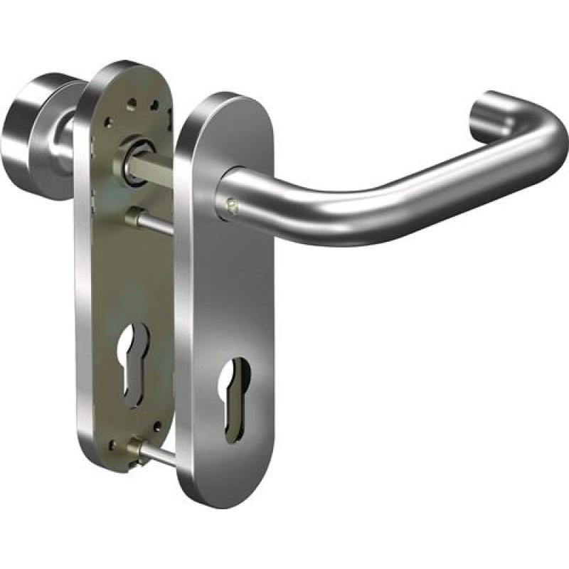 Vierkant 8 mm · Entfernung 72 mm, Entfernung WC 78 mm · Drückergarnitur = beidseitig Drücker 8100 / Wechselgarnitur = außen Knopf 3020 / innen Drücker 8100 · für Türstärke 38-63 mm / WC = 37-42mm · geprüft nach DIN 1906 (Gebrauchs-Kategorie Klasse 4) · Hochhaltefedern einseitig (Durchgangsseite) Demontagemöglichkeit der Drückerlochteile bei Verwendung einer handelsüblichen Sicherungsringzange. Optimale Montage durch M5 TORX-Schrauben Lieferung als Komplettgarnitur