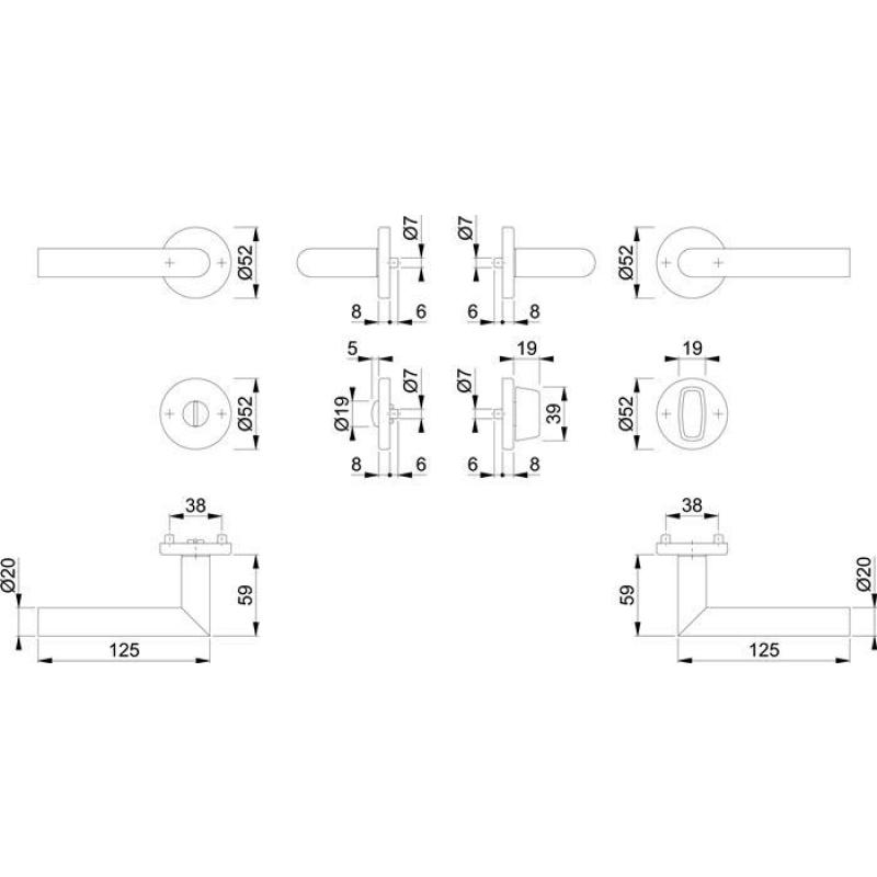 Weitere technische Eigenschaften · Befestigungssystem: Schnellstift · Nockenabstand: 38mm · Rosettengrt.Ams.E1400Z/42 · KV/42KVS VA F69 rd.SK/OL · DIN L/R D/D HOPPE ·