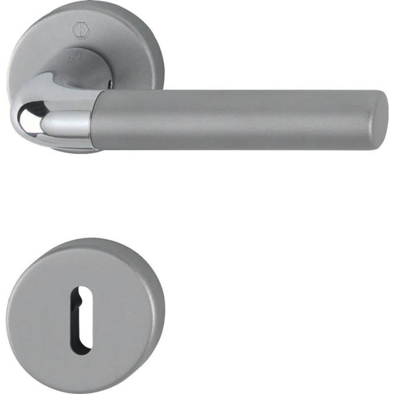 Innentür-Rosetten-Garnitur geprüft nach DIN EN 1906 (Gebrauchs-Kategorie Klasse 3) · Türgriffe mit Schnellstift-Verbindung (8 mm Vierkant) für Türstärke 37-42 mm und Rückholfeder · Rosetten mit Stütznocken unsichtbar verschraubt · Messing verchromt glänzend / Aluminium Stahl matt · Anschlagrichtung DIN links / rechts