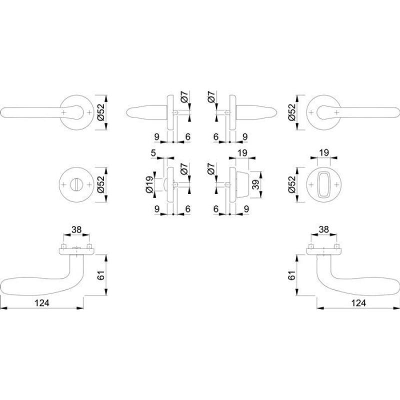 für Zimmertüren · verdeckte, durchgehende Verschraubung mit selbstschneidenden Gewindeschrauben · Kunststoff-Unterkonstruktion mit Stütznocken · mit Hochhaltefeder · Türgriff mit Profilstift-Verbindung · Vierkant 8 mm · für Türstärke 37 - 42 mm · Anschlagrichtung DIN links / rechts