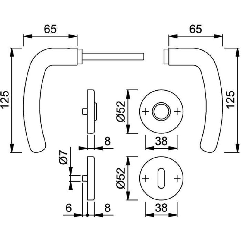 Weitere technische Eigenschaften · Befestigungssystem: Schnellstift · Nockenabstand: 38mm · Rosettengrt.Den.E1310Z/42 · KV/42KVS VA F69 rd.OB DIN · L/R D/D HOPPE ·
