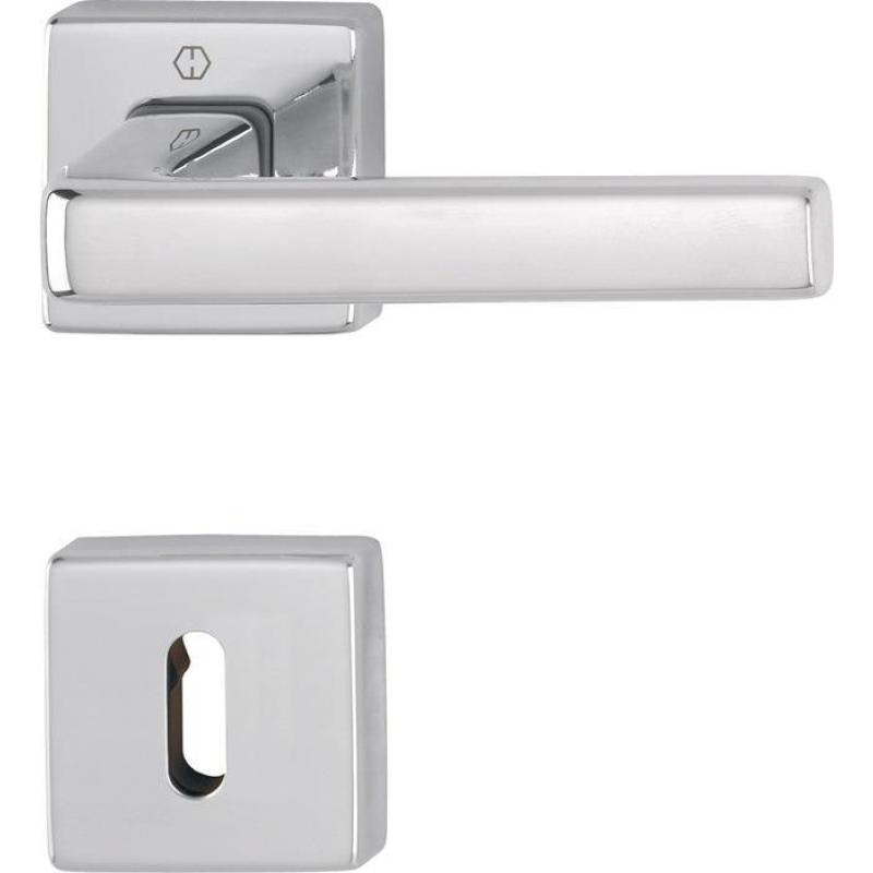 HOPPE-Aluminium-Rosetten-Türgriff-Garnitur mit Schlüsselrosetten für Innentüren: Lagerung: Türgriffe fest/drehbar, Rückholfedern, wartungsfreie Gleitlager Verbindung: HOPPE-Vollstift · Unterkonstruktion: Kunststoff, Stütznocken Befestigung: verdeckt, durchgehend, wechselseitig, Mehrzweckschrauben für Türstärke 37-42 mm