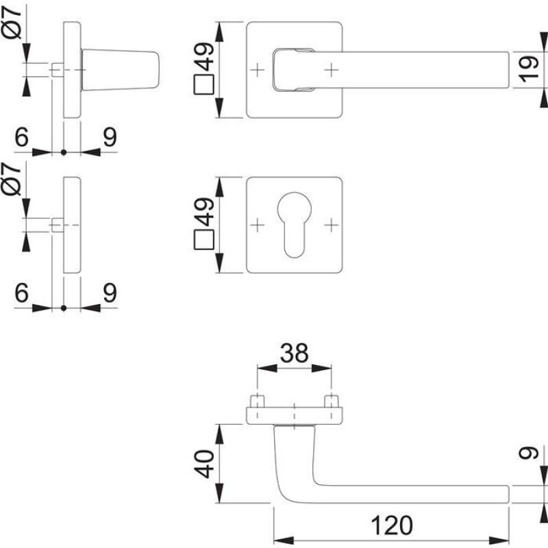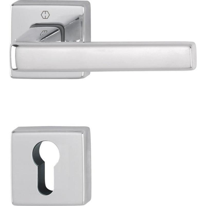 HOPPE-Aluminium-Rosetten-Türgriff-Garnitur mit Schlüsselrosetten für Innentüren: Lagerung: Türgriffe fest/drehbar, Rückholfedern, wartungsfreie Gleitlager Verbindung: HOPPE-Vollstift · Unterkonstruktion: Kunststoff, Stütznocken Befestigung: verdeckt, durchgehend, wechselseitig, Mehrzweckschrauben für Türstärke 37-42 mm