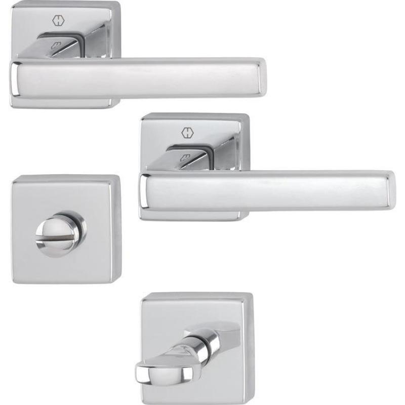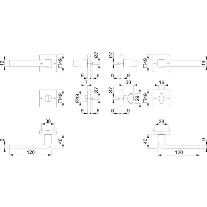 HOPPE-Aluminium-Rosetten-Türgriff-Garnitur mit Schlüsselrosetten für Innentüren: Lagerung: Türgriffe fest/drehbar, Rückholfedern, wartungsfreie Gleitlager Verbindung: HOPPE-Vollstift · Unterkonstruktion: Kunststoff, Stütznocken Befestigung: verdeckt, durchgehend, wechselseitig, Mehrzweckschrauben für Türstärke 37-42 mm