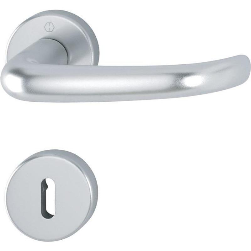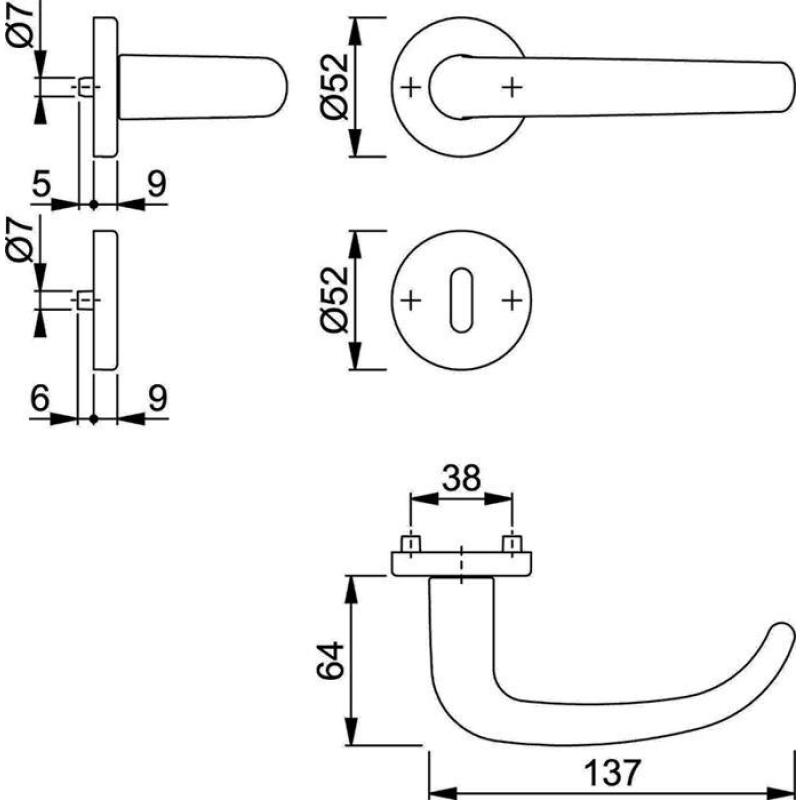 Innentür-Rosetten-Garnitur nach DIN EN 1906 (Gebrauchs-Kategorie Klasse 3) · Türgriffe mit Schnellstift-Verbindung (mit 8 mm Vollstift) für Türstärke 37 - 42 mm · Rosette mit Kunststoff-Unterkonstruktion, Rückholfeder und Stütznocken · Befestigung verdeckt, durchgehend · wechselseitig inkl. Mehrzweckschrauben · Anschlagrichtung DIN links / rechts