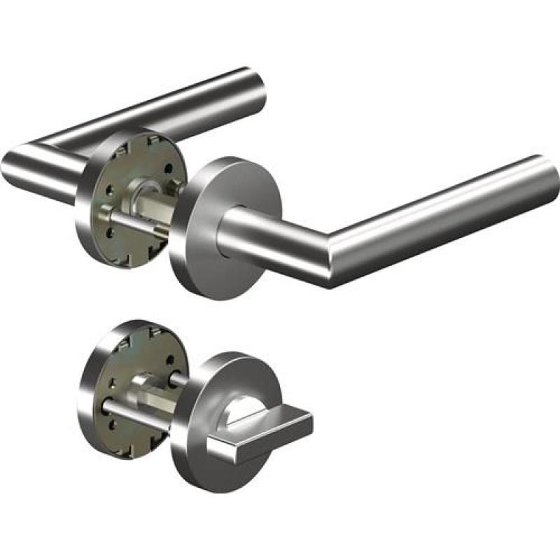DIN links / rechts · Vierkant 8 mm · Drückergarnitur = beidseitig Drücker 8906 / Wechselgarnitur = außen Knopf 3020 / innen Drücker 8906 · für Türstärke 38-63 mm / WC = 37-42 mm · geprüft nach DIN EN 1906 (Gebrauchs-Kategorie Klasse 4) Demontagemöglichkeit der Drückerlochteile bei Verwendung einer handelsüblichen Sicherungsringzange. Optimale Montage durch M5 TORX-Schrauben · Hochhaltefedern einseitig (Durchgangsseite) Lieferung als Komplettgarnitur