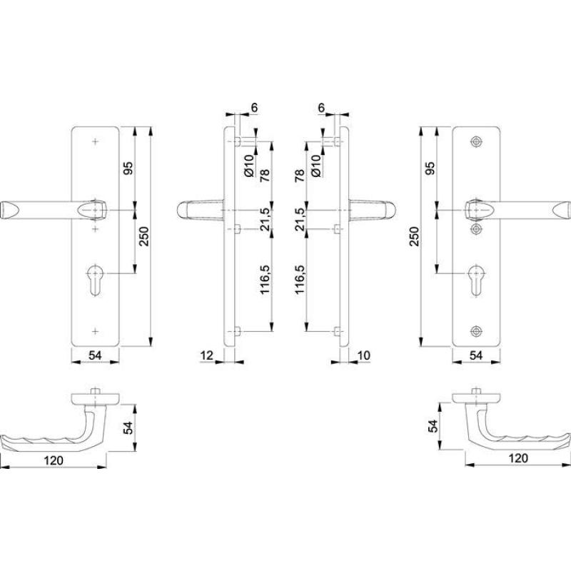 Weitere technische Eigenschaften · Breite: 54mm · Länge: 250mm · Abdeckung: ohne Zylinderabdeckung · Schildstärke: 12 mm · Schutzgarnitur London · 113/2221/2410 Alu.F1 92mm · 66-71mm HOPPE ·