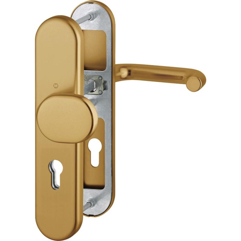 für Abschlusstüren · einbruchhemmend nach DIN 18257 · Knopfschild-Randhöhe: 12 mm · Stahlunterkonstruktion im Innen- und Außenschild · mit Rückholfeder-Paket · mit Schnellstift-Verbindung · DIN links / rechts verwendbar · hochfeste, verdeckte Verschraubung · einschließlich Befestigungsmaterial · Lochung PZ · Widerstandsklasse ES 1