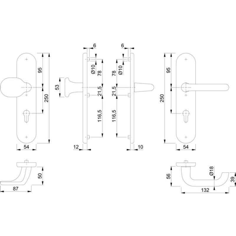 Weitere technische Eigenschaften · Breite: 54mm · Länge: 250mm · Abdeckung: ohne Zylinderabdeckung · Schildstärke: 12 mm · Schutzgarnitur Paris · 86G/3331/3310/138L Alu.F4 · 72mm 37-47mm HOPPE ·