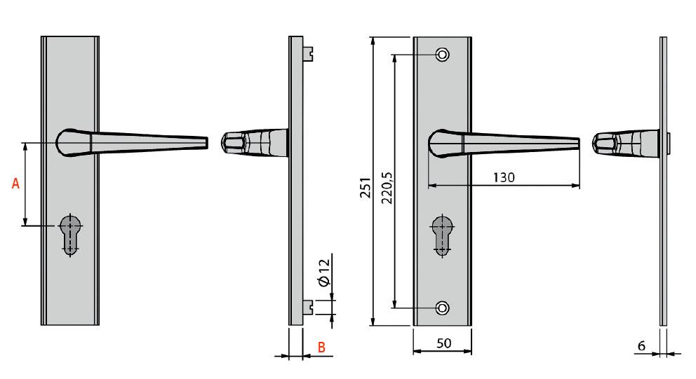 Für die Bemessung des Schutzbeschlags messen Sie zuerst den Vierkant für den Türgriff (Schlossnuss) des Schlosses und den Abstand zwischen Profilzylinderlochung und der Schlossnuss Maß A. Messen Sie nun die Stärke des Türblattes. Wechselgarnituren mit außen Knauf und innen Türgriff haben meistens eine Profilzylinderlochung (PZ). Achtung: Bei der Auswahl des Schließzylinders muss das Maß des Beschlages außen und innen dazu gerechnet werden!