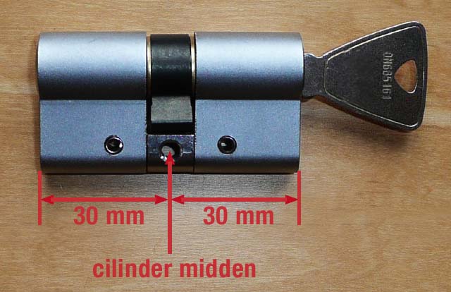 | Let wel: bij het opmeten van de sluitcilinder in ingebouwde toestand, er rekening mee houden dat bij enkele fabrikanten de cilinder 1 mm langer kan zijn. (dit is bij de desbetreffende productinformatie pagina’s nogmaals uitgelegd). Vooral bij deuren zonder deurbeslag (deuren die aan de buitenzijde vlak zijn) moet hier op gelet worden. Hiervoor word de voorkeur gegeven aan een sluitcilinder met de bouwlengte 27 of 28 millimeter aan de buitenzijde. | |