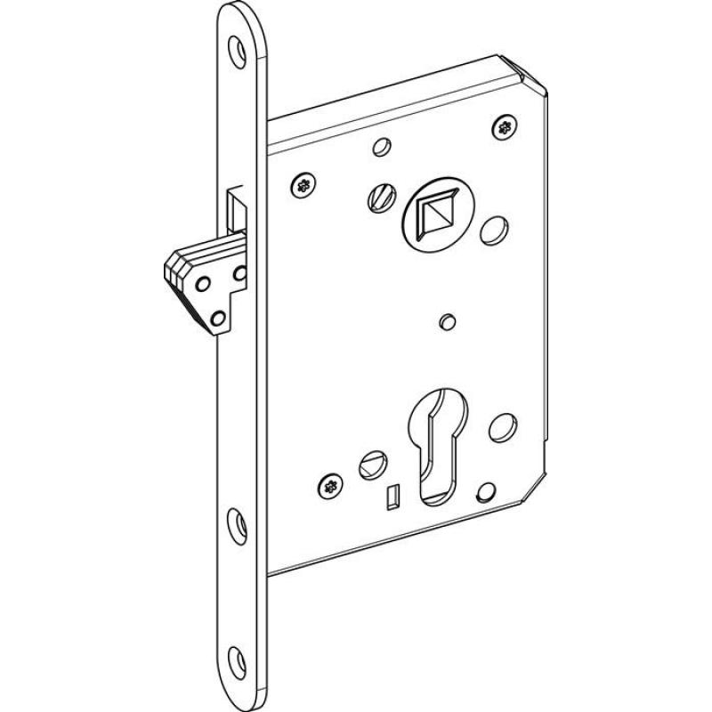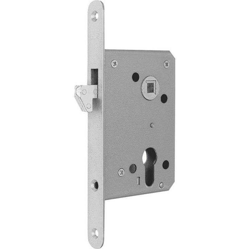 mit Hakenfalle · PZ · Hakenfalle aus Stahl · Stulp silber, käntig · Entfernung 60 mm · verzinkter, allseitig geschlossener Kasten · Vierkant 8 mm · Dornmaß 55 mm · ohne Schließblech