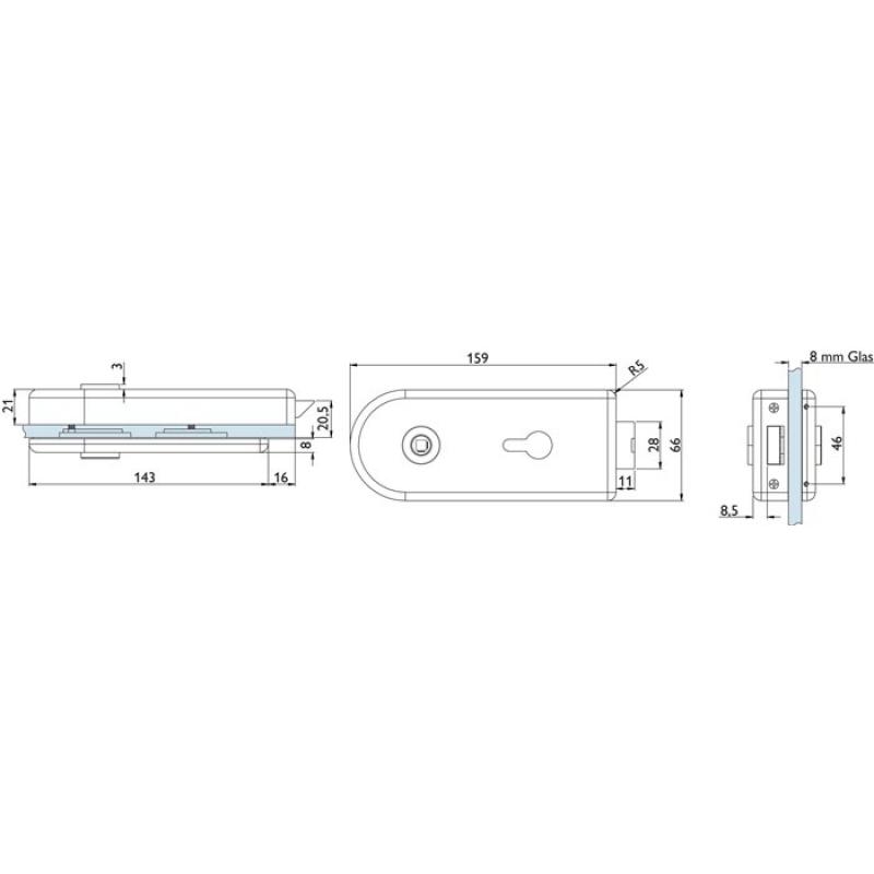 Weitere technische Eigenschaften · Material: Edelstahl · Glastürschloss 6013 · PZ-Venezia VA ma PZ DIN · L/R HERMAT ·