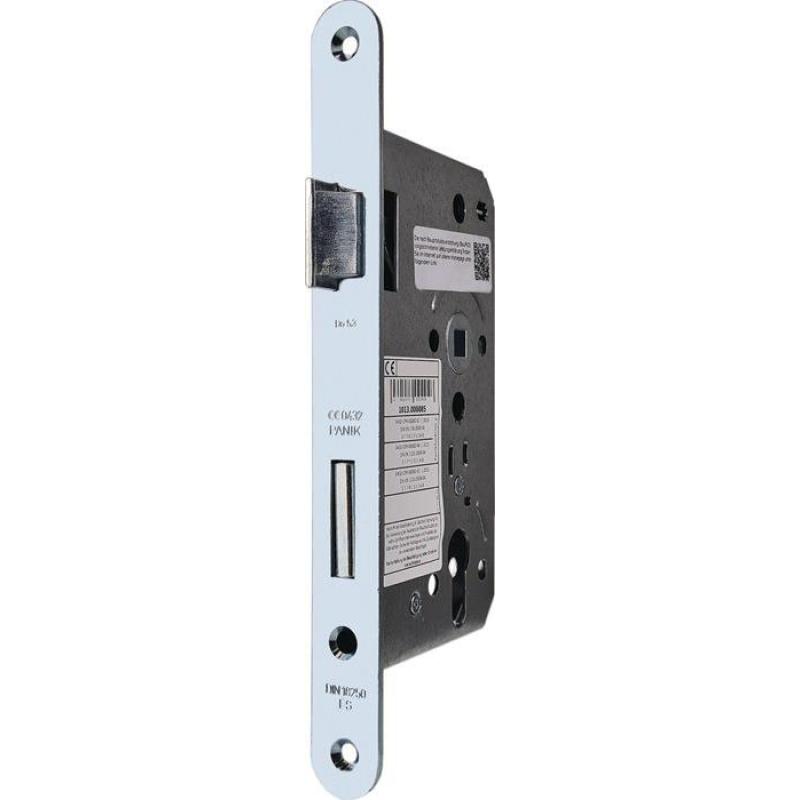 Weitere technische Eigenschaften · Riegel: Stahlriegel · Ausführung: mit Wechsel · Schlosskasten: 165 mm · Riegelausschluss: 22mm · Falle: aus Temperguss · Panik-Einsteckschloss · 1007PPFL Fkt.E · rd.24/65/72/9mm DIN ·