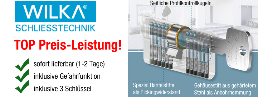 WILKA Carat S4 Profil-Doppelzylinder - Messing matt vernickelt