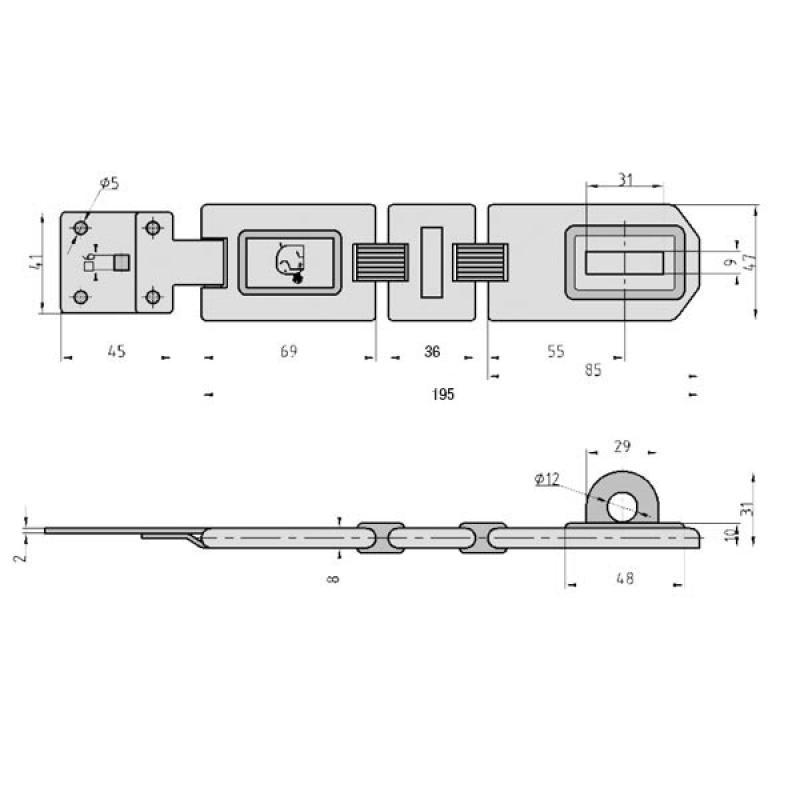 Die Sicherheitsüberfalle SF 50 ist zur Sicherung von Kisten, Klappen und Türen, beispielsweise von Kellerräumen, Bauwagen, Geräteschuppen oder Gartenhäuschen, geeignet. Sie kann optional durch ein Vorhangschloss gegen unbefugtes Öffnen gesichert werden.