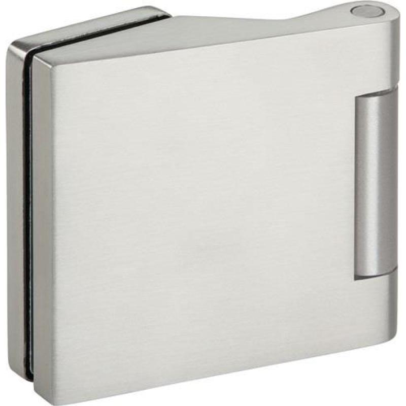 Glastür-Bandpaar 3-teilig kantig bzw. 3-teilig abgerundet · (Officebohrung) ohne Rahmenteile · inkl. Hülsen für Rahmenteile, max. empfohlene Türbreite 1000 mm · Oberfläche 20 (Edelstahlfarben)