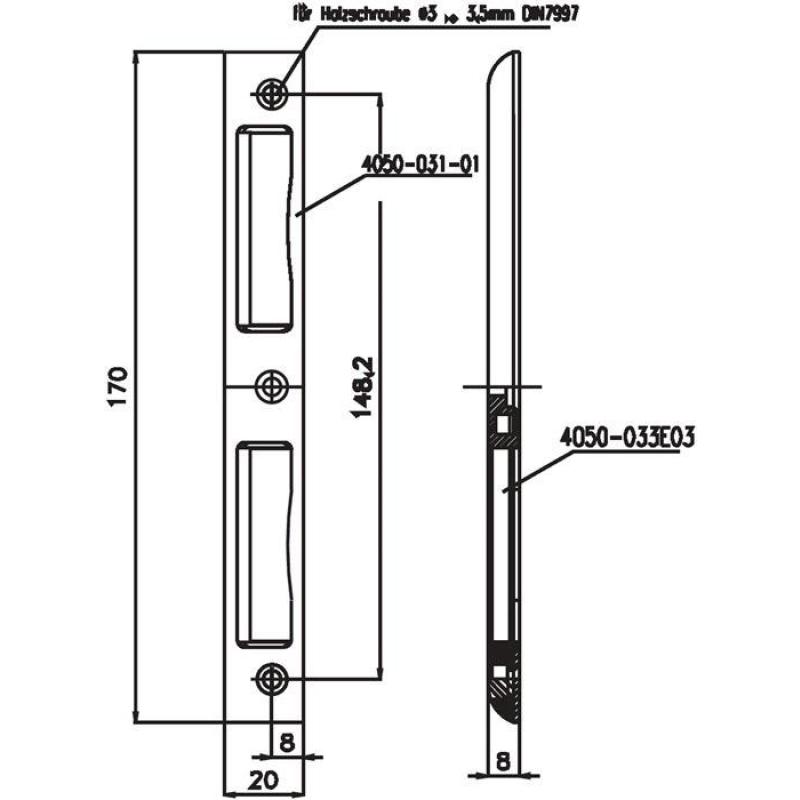 Winkel · mit Kunststoffunterlage · ungleichschenklig · für Zimmertüren 20 x 8 x 170 mm Winkelschließbl.Alu.silbe · r Winkel B.20mm rd.T.8mm · DIN L/R SSF ·