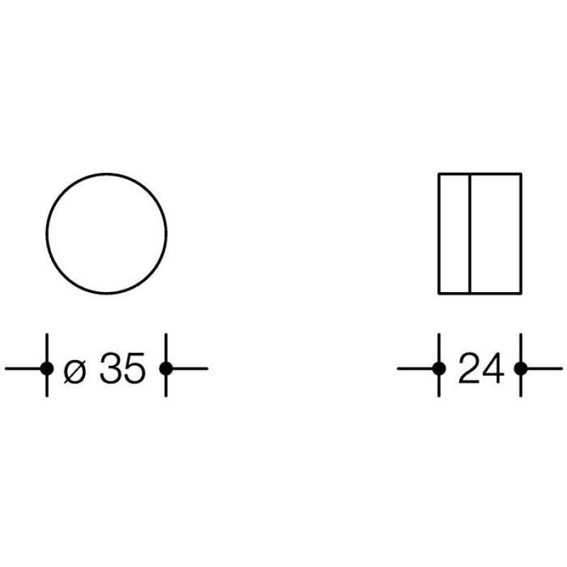 aus Polyamid · Durchmesser 35 mm · 24 mm lang · mit schwarzem elastischen Puffer · diebstahlgeschützt durch verdeckte Verschraubung