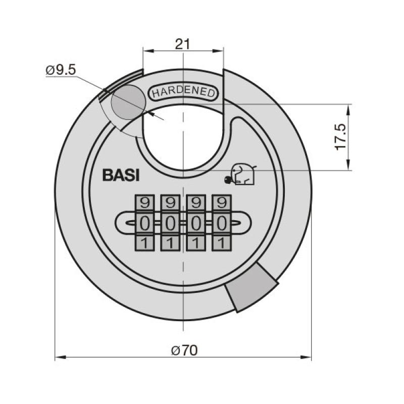 • Durchmesser: 70 mm Bügel-Durchmesser: 9,5 mm