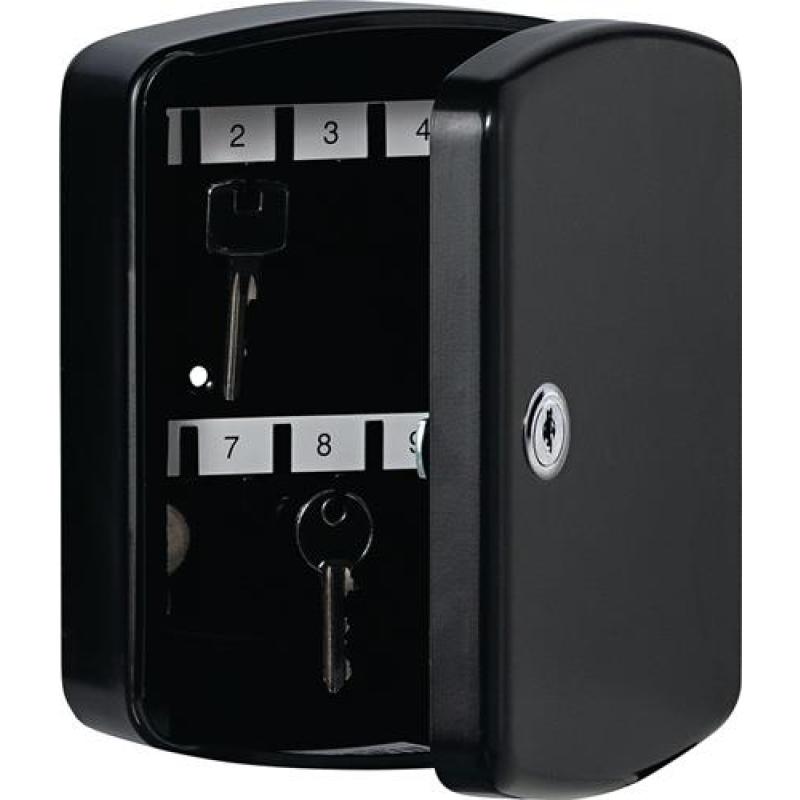 Weitere technische Eigenschaften · Modell: abgerundete Form · Schlüsselbox Key Box · H330xB235xT75mm weiß · Stahlbl.Anz.Hak.35 · mit Stahlblechgehäuse in runder Form · verdecktes Scharnier · Zylinderschloss · Schlüsselleiste mit fortlaufender Nummerierung ·
