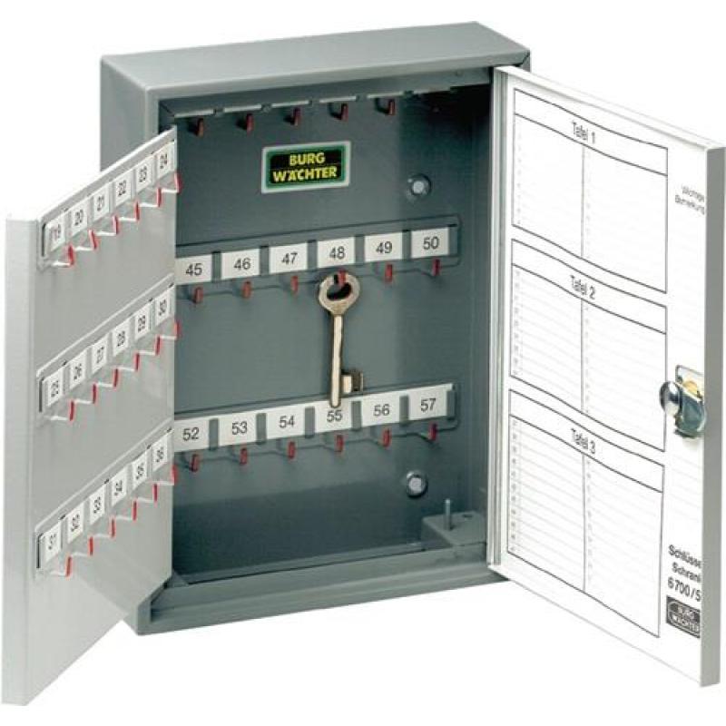 Weitere technische Eigenschaften · Material: Stahlblech · Schlüsselschrank 6700 · H330xB245xT85mm2-türig · vorg.f.HZ Anz.Hak.74 ·