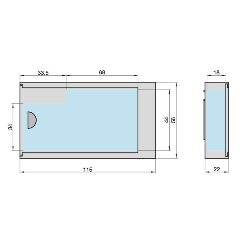 - Abmessung: Länge 115 mm, Breite 56 mm, Tiefe 22 mm